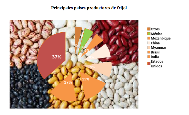 México está dentro los primeros ocho productores de frijol en el mundo, junto con Myanmar, China, India, Brasil, Tanzania y Estados Unidos, que aportan el 64.8 por ciento de la oferta mundial.