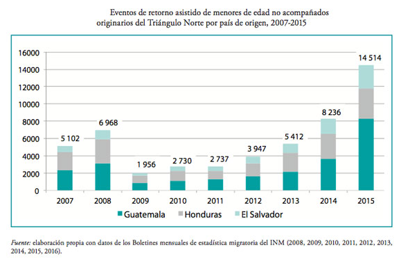 Durante 2016 fueron repatriados 219 mil 932 mexicanos, de los cuales 13 mil 746 fueron menores de edad, según datos de la Secretaría de Gobernación; un año antes, sumaron 11 mil 743 niñas, niños y adolescentes (NNA).