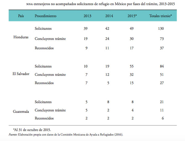 Se otorga cuando se trata de personas cuyo grado de vulnerabilidad dificulte o haga imposible su retorno asistido, y cuando se trate de NNA “que se encuentren sujetos al procedimiento de sustracción y restitución internacional de niños, niñas o adolescentes”; sin embargo, el número de reconocidos como refugiados, es muy bajo si se compara con el volumen del flujo del Triángulo Norte que transita por el país.