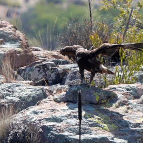 El ave tuvo la oportunidad de incorporar a su ambiente natural, como parte del programa de liberación, a un ave rehabilitada en éste Centro, pero lo más atractivo de ello es que no es cualquier ave, sino la emblemática Águila Real, estampa de nuestro Escudo Nacional.