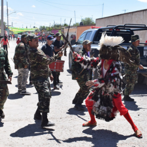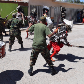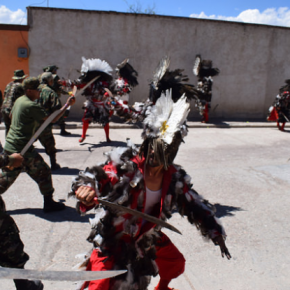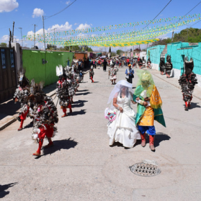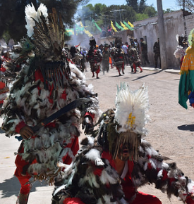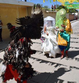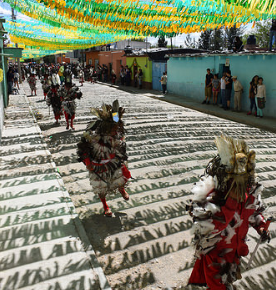 La comunidad de Mesillas, en el municipio de Tepezalá, festejó el domingo la fiesta patronal en honor a San José en medio de una representación llena de color, de tradición y de euforia; un completo deleite para los sentidos. Una danza que avanza entre las calles llenas de papeles verdes y amarillos que cuelgan de los techos de las casas representa la pelea entre chichimecas y españoles, vestidos de militares; el sonido de los machetes chocando entre sí, el estruendoso rugir de los mosquetes y el penetrante olor a pólvora quemada. Las mujeres jóvenes huyen de los indios vestidos de plumas, majestuosos, intimidantes se acercan gritando con sus manos llenas de tizne y manchan los rostros de quien atraviese su camino. Los indios protegen al rey y a la reina que acompañan la marcha tomados del brazo. El recorrido lleva la danza y a las multitudes hacia el templo donde una cuadra antes de llegar al atrio se prepara un ladrón a huir de los indios, al sonar de los disparos, emprenden carrera a toda velocidad, el ladrón fue capturado y llevado a un costado del templo para ser ejecutado. Los indios bailan al sonido de un violín, se acercan al ladrón que hincado y con los ojos vendados revienta con las manos una bolsa de agua teñida de rojo que mancha su ropa mientras cae desplomado sobre el piso.