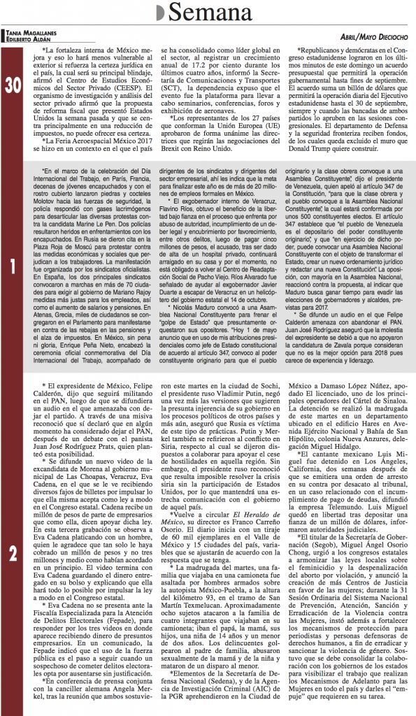 Semana Dieciocho / Abril / Mayo