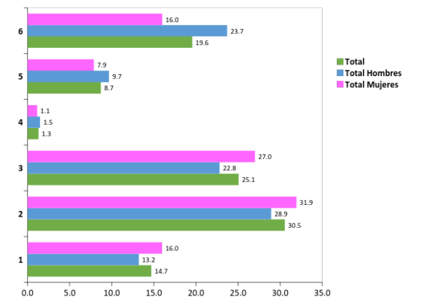 México Mujer   100.0   41.8 6.2 44.7 3.8 3.5