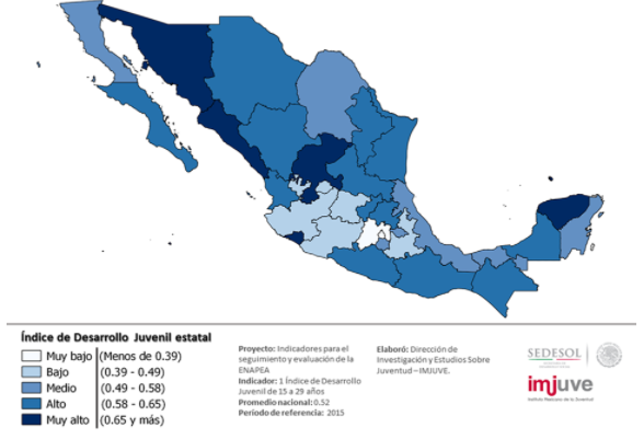 - El Índice de Desarrollo Juvenil Estatal asciende a 0.480, cifra menor al Nacional