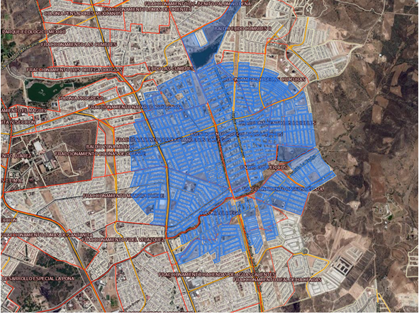 Con lunares poblacionales de la misma dimensión, de un búffer de un kilómetro de radio, tenemos cinco mil habitantes en San José de Gracia, 10 mil en los fraccionamientos de Los Bosques, 20 mil en los de Jardines y 30 mil en Colinas del Río y su zona colindante.