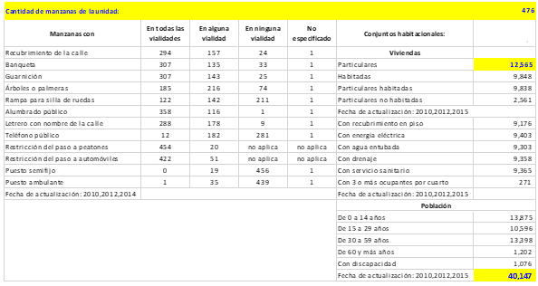 Continuando, y hacia el extremo, tenemos en: Pilar Blanco, Rodolfo Landeros, Insurgentes y Vicente Guerrero más de 40 mil habitantes en el mismo espacio de 2 kilómetros de diámetro.