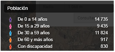 Zona: Guadalupe Peralta Gámez,  Población dividida por grupos etarios