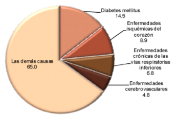 Lo anterior se reafirma con las estadísticas de mortalidad en 2015: la diabetes mellitus; las enfermedades isquémicas del corazón; las enfermedades crónicas de las vías respiratorias inferiores y las enfermedades cerebrovasculares, constituyen las principales causas de muerte de la población, en conjunto ocasionaron 35% del total de las defunciones ocurridas en el estado.