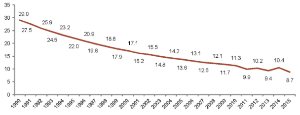 En cuanto a la mortalidad infantil, también se observa una disminución importante entre 1990 y 2015, al pasar de 29 a 8.7 defunciones de niños menores de un año por cada mil nacidos vivos. Cabe señalar que la OMS hace énfasis en que “el riesgo de muerte del niño es mayor durante el periodo neonatal (los primeros 28 días de vida) y para evitar estas muertes son esenciales un parto seguro y cuidados neonatales eficaces”.
