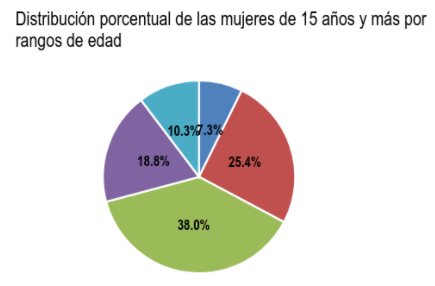 De acuerdo con la edad, el mayor porcentaje de las mujeres se ubica entre los 30 y 49 años (38%). El 25.4% tenía entre 18 y 29 años, el 18.8% entre 50 y 64 años, el 10.3% tenían 65 o más años, mientras que únicamente el 7.3% eran menores de 18 años.