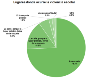 La prevalencia nacional de violencia escolar es de 25.3% y las entidades con las prevalencias más altas son: Querétaro, Jalisco, Ciudad de México, Aguascalientes y Oaxaca.