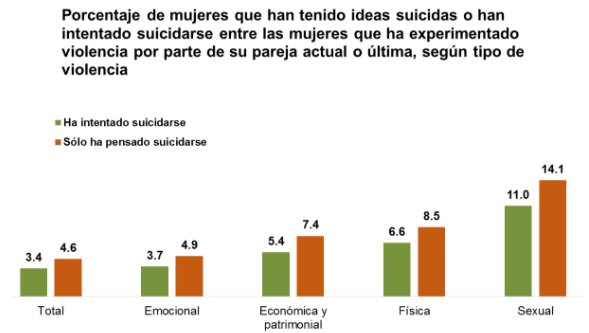 Una cuarta parte de las mujeres que han sido sujetas a violencia sexual ha pensado en quitarse la vida y 14.1% lo ha intentado.
