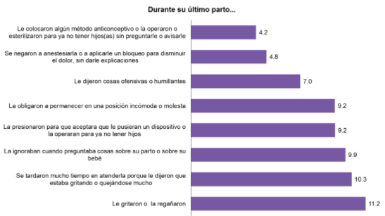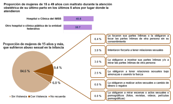 40.8% de las mujeres que dieron a luz en el IMSS reportan malos tratos durante la atención y 38.7% de quienes fueron atendidas en algún hospital o clínica pública de su entidad.