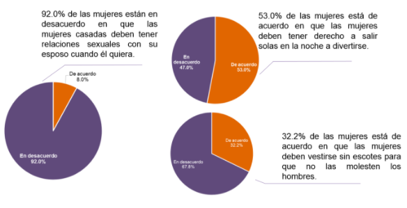 5 de cada 10 mujeres opinan que las mujeres que trabajan descuidan a sus hijas e hijos, aun cuando la mayoría (70%) también opina que las mujeres deben ser igual de responsables que los hombres de traer dinero a la casa.