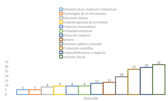 Aparece dentro de los diez primeros lugares en Educación básica, Empresas innovadoras, Propiedad industrial, Educación superior y en su contexto general del estado.