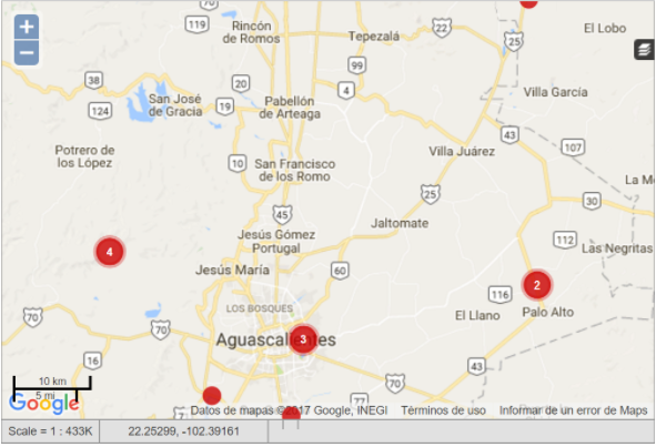 En el Mapa de los Feminicidios en México elaborado por María Salguero, nueve cruces marcan los asesinatos de mujeres cometidos por razones de género en Aguascalientes desde 2016; de éstos, cinco han ocurrido en el presente año.