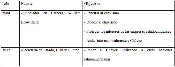 Desde entonces, los Estados Unidos se trazaron los siguientes objetivos respecto a Venezuela, como lo explica el siguiente cuadro: