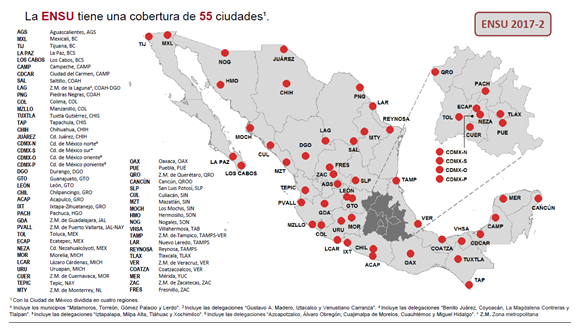 La Encuesta Nacional sobre Seguridad Urbana ENSU del Inegi brinda ahora estimadores representativos para 55 ciudades mexicanas, incluidas la ciudad de Aguascalientes y la capital del país. Con el mayor porcentaje de personas que consideraron que vivir en una ciudad insegura fueron: Villahermosa, Ecatepec de Morelos, Chilpancingo de los Bravo, Reynosa, Coatzacoalcos y Fresnillo, con porcentajes altísimos de 96.6, 94.6, 94.1, 89.6, 89.5 y 88.1%, respectivamente.