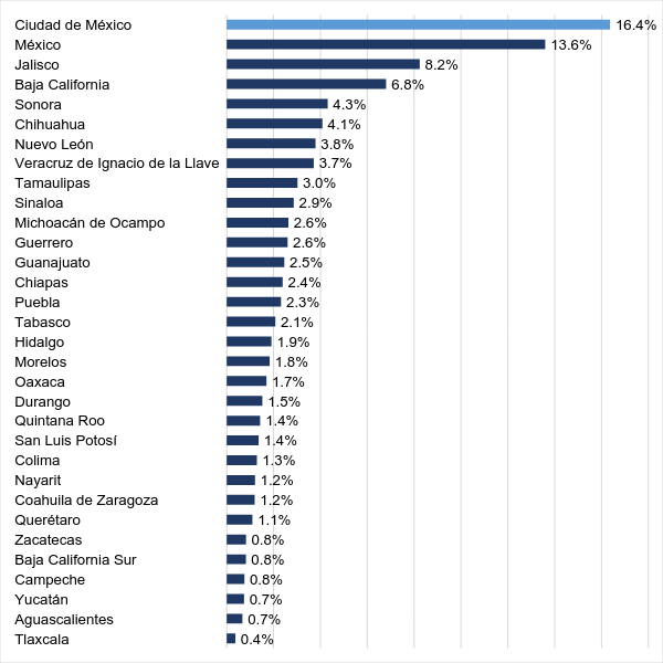 En lo concerniente a la información del sistema penitenciario, durante 2016 ingresaron 108 mil 870 personas a centros penitenciarios y centros de tratamiento y/o internamiento para adolescentes, por un total de 136 mil 620 personas egresadas de los mismos. De igual forma, al cierre de 2016 se encontraban recluidas y/o internadas 190 mil 175 personas. De este último grupo, Ciudad de México concentró 16.4% del total nacional.
