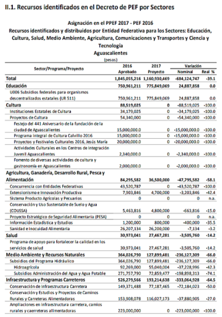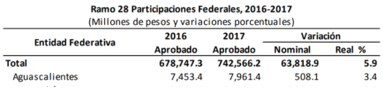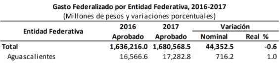 El recurso asignado para Aguascalientes asciende a 17 mil 282 millones y su desglose por ramos es el siguiente: