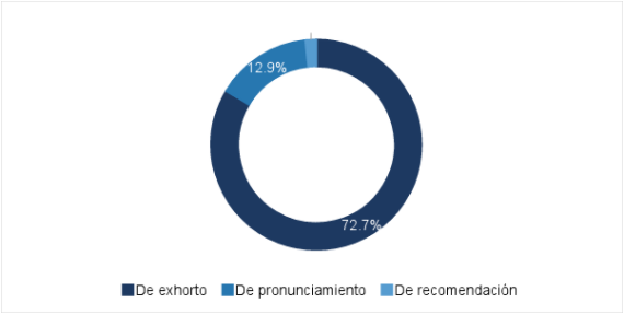 De las cinco mil 129 proposiciones con punto de acuerdo presentadas ante los Congresos Estatales y Asamblea Legislativa de la Ciudad de México durante 2016, destaca que 72.7%(4) fue de exhorto: