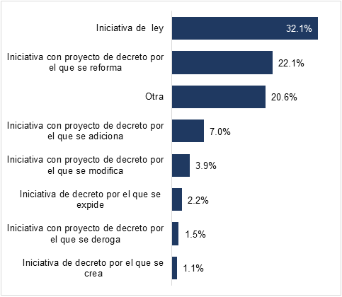 Distribución porcentual de las iniciativas presentadas ante los Congresos Estatales y Asamblea Legislativa de la Ciudad de México, por tipo