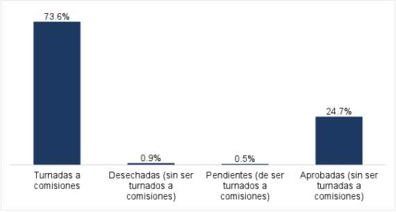 De las 14 mil 312 iniciativas y proposiciones con punto de acuerdo presentadas ante los Congresos Estatales y Asamblea Legislativa de la Ciudad de México, 73.6% fueron turnadas a comisiones para su dictaminación: