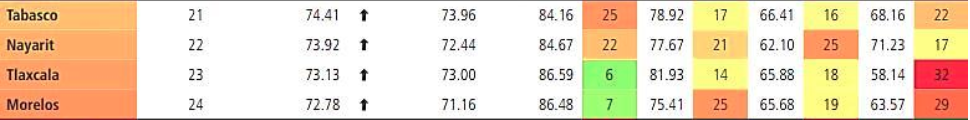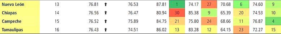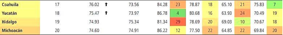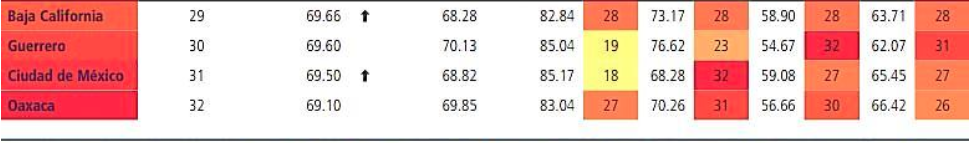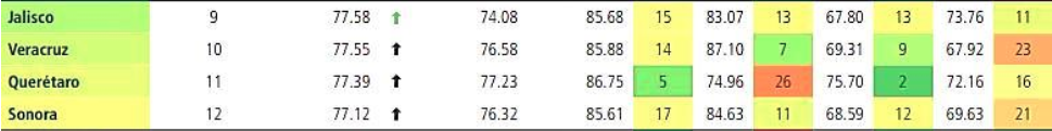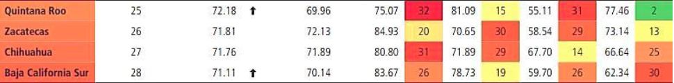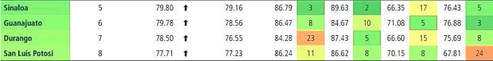 Para el índice de competitividad global, México es 51 y los pilares y calificación son los siguientes: