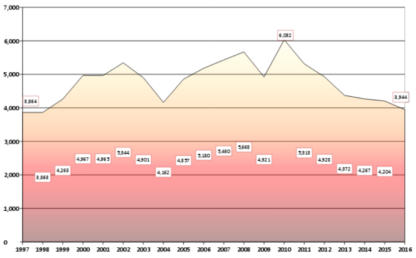 Aguascalientes: Total de Accidentes de Tránsito Terrestre
