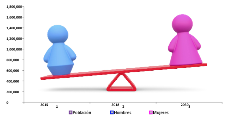 Para el 2030 la población estatal ascenderá a más de un millón y medio de personas, y se proyecta que para esas mismas fechas el municipio de la capital tendrá un millón de habitantes. Para entonces, ya serán 106 mujeres por cada cien hombres, lo que habla de un agravamiento en la intensidad migratoria, o de un número mayor de muertes juveniles (accidentes, suicidio) que son más propias de los varones que de las mujeres.