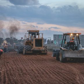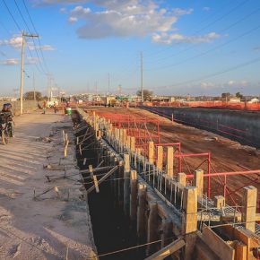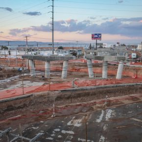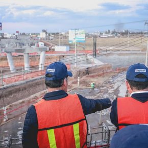 El gobernador Martín Orozco Sandoval, acompañado por el presidente de la CMIC, Francisco Romero David, y el secretario de Obras Públicas, José de Jesús Altamira Acosta, realizó un recorrido de la supervisión de obra del Distribuidor Vial de la Avenida Siglo XXI y la carretera 45 norte, que registra un avance general del 46 por ciento, que incluye los trabajos de tierra armada, colocación de columnas, conformación de muros y rampas, así como la perforación de la parte inferior, que con recursos estatales, al momento tiene una inversión de más de 400 millones de pesos.