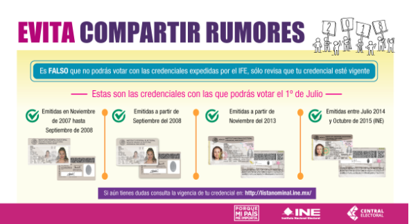 Esta precisión la hace el Instituto Nacional Electoral (INE) debido a que en redes sociales circula información falsa que alerta a la ciudadanía sobre la imposibilidad de ejercer su voto con credenciales de elector emitidas por el IFE.