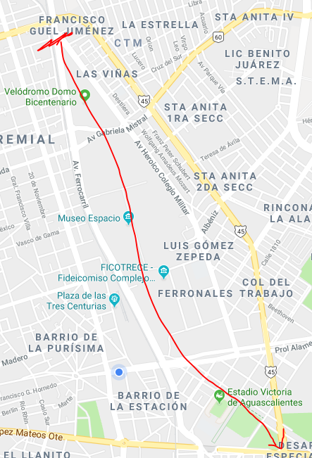 - El corredor inicia en Gómez Morín a la altura del Hospital Hidalgo, para continuar por Tres Centurias, el Deportivo Ferrocarrilero, los estadios Victoria y Romo Chávez hasta Ciudad Deportiva