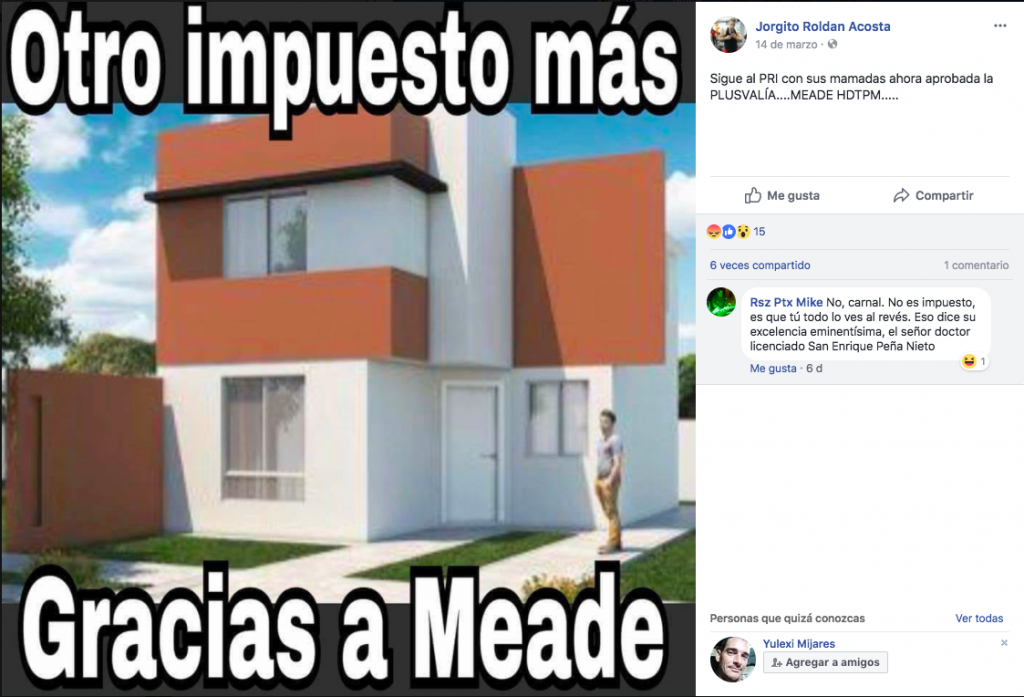 La información es falsa: Meade no propuso ninguna ley, porque los secretarios no tienen capacidad legislativa, ni durante su mandato en Hacienda se aprobó un impuesto para gravar la plusvalía.