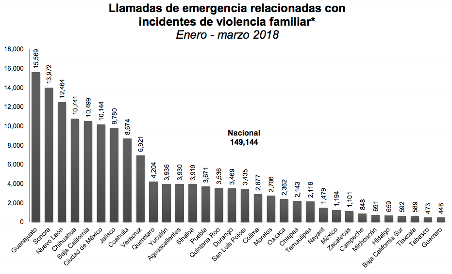 De acuerdo con el Informe Delictivo y de Emergencias con Perspectiva de Género, elaborado por el Secretariado Ejecutivo del Sistema Nacional de Seguridad Pública (SESNSP), cerca de la mitad de las llamadas atendidas por el 911 -tres mil 930, para ser exactos- tuvieron que ver con violencia familiar, a un ritmo de 43 por día.