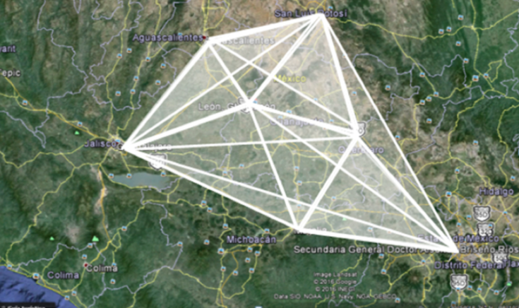 ¹ El Diamante de México se sitúa sobre el triángulo de crecimiento mexicano, que engloba el área con mayor densidad de ciudades en el país. Está conformado por las urbes de Guadalajara, Aguascalientes, San Luis Potosí, Querétaro, Morelia y la megalópolis de México.