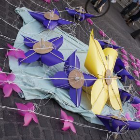 CV: Bueno yo creo que hay otra, hay una instalación también muy interesante en la Feria del Libro, la de Las Geodas, realmente el textil es relativamente económico. Y bueno, había hecho propuestas similares a algunos otros organismos culturales, pienso algunos nombres pero no los voy a decir, pero bueno, lo que sí diré es que si quieren hacer dinero, no se metan al ámbito cultural.