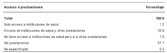 La alta participación de estas mujeres en empleos informales y con bajos salarios se refleja en el nivel de acceso a prestaciones; se reconoce que la economía informal queda fuera del ámbito de aplicación de las leyes laborales, en consecuencia, las personas que se insertan en ella están expuestas a salarios bajos, a condiciones de inseguridad laboral y sin acceso a prestaciones sociales como las pensiones, la licencia por enfermedad o el seguro de salud, entre otras (ONU Mujeres, 2017).