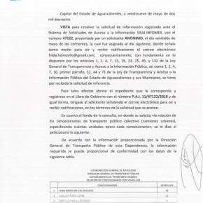 Relación de Concesionarios de Camiones Urbanos en Aguascalientes