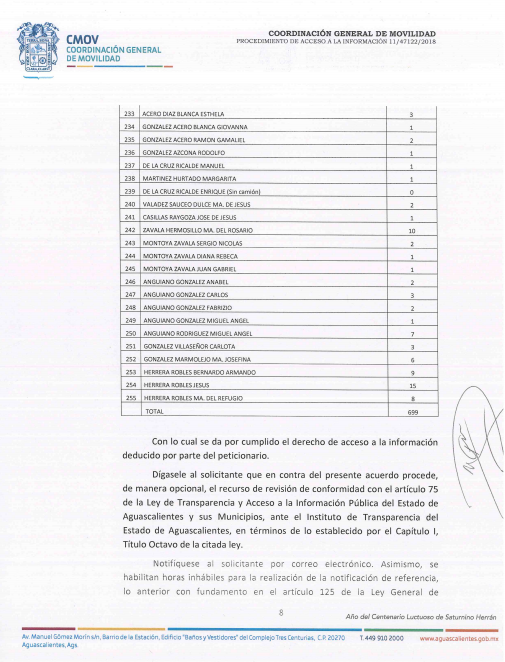 Home Relación de Concesionarios de Camiones Urbanos en Aguascalientes | Solicitud de información 47122 vía transparencia (8/9) Relación de Concesionarios de Camiones Urbanos en Aguascalientes | Solicitud de información 47122 vía transparencia (8/9)