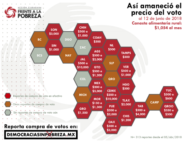 Otros datos, calculan el costo del voto de otra manera y con otros montos, Democracia sin pobreza (Democraciasinpobreza.mx) es un esfuerzo colectivo coordinado por Acción Ciudadana Frente a la Pobreza y con el apoyo institucional de Alianza Cívica que busca se propuso monitorear, vigilar, visibilizar y prevenir el uso electoral de programas sociales para evitar que la pobreza y la desigualdad sean utilizadas como herramientas de control y manipulación política y se desvíe dinero de los programas de superación de la pobreza hacia operativos político-electorales.