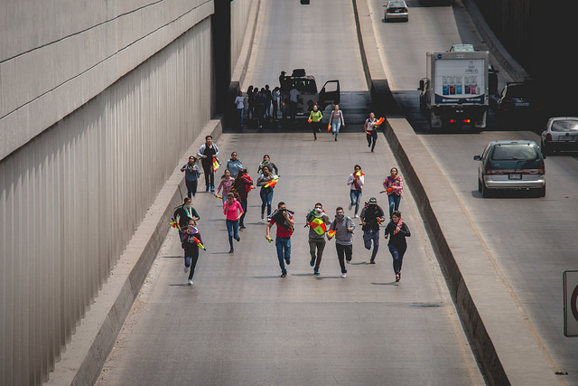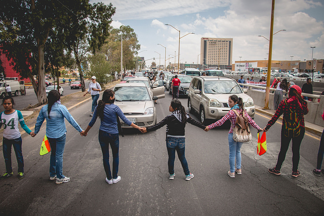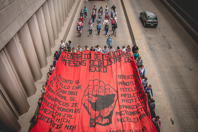 “Sí es necesario tener en cuenta que no somos criminales, solo somos estudiantes, nosotros no somos los que roban a las personas, no somos los que les roban impuestos, no somos los que hacen leyes a su beneficio, no somos los que manejan libremente el dinero, millones de pesos, no somos aquellas personas que ganan más de un millón de pesos, como las personas que trabajan en Pemex (…) es por eso muy importante que tengamos esa conciencia, que no nos digan que somos las personas que damos miedo, solo somos simples estudiantes, que estamos luchando de manera pacífica, solo alzando nuestra voz, si interrumpimos el tránsito una hora, pero no es con una acción mala para que el pueblo se moleste, sino que simplemente para que se den cuenta que los estamos necesitando, que esta represión no quede impune, que se haga valer, que se resuelva, a un compañero lo golpearon de manera muy violenta”.