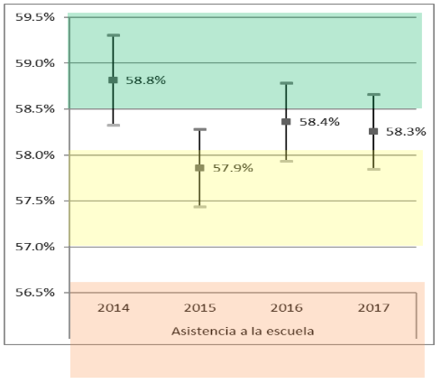 Porcentajes de asistencia a la escuela de 2014 a 2017