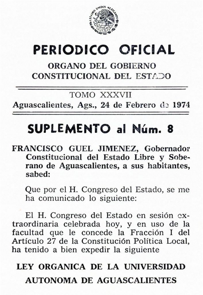 El punto final del trámite se dio cuando, después de haber mantenido pertinazmente al margen a la comunidad universitaria, la propuesta atconiana de Ley Orgánica para transformar el Instituto de Ciencias en Universidad departamental, fue aprobada por el Congreso del Estado y sancionada por el Gobernador, entrando en vigor al ser publicada en el Periódico Oficial del domingo 24 de febrero de 1974.