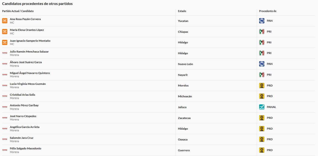 Candidatos procedentes