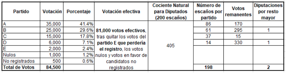 Para mayor claridad, el siguiente ejemplo de una votación ficticia: