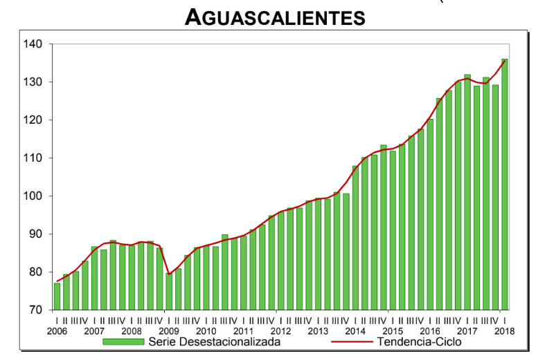 En el trimestre enero-marzo de 2018 las entidades federativas que reportaron el crecimiento más significativo, con series desestacionalizadas, en su actividad económica con relación a la del trimestre anterior fueron: Aguascalientes, Baja California Sur, Oaxaca, San Luis Potosí, Hidalgo, Yucatán, Sinaloa, Zacatecas, Tabasco, Tamaulipas, Baja California, Veracruz de Ignacio de la Llave y Guerrero, entre otras.