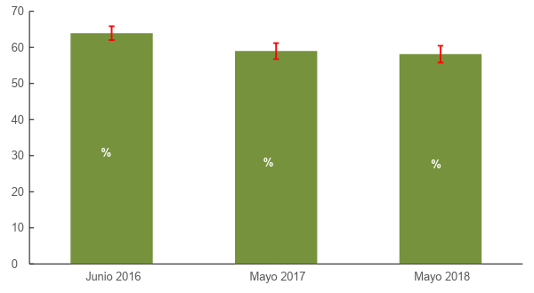 Este comportamiento no presenta cambios de 2016 a 2018, el porcentaje de asistencia no se ha modificado, la mayor prevalencia de asistencia se tiene para proyección de películas o cine y la menor para espectáculo de danza en la misma magnitud.