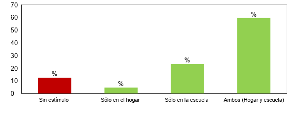 Así, se identifica que cuando el estímulo para la asistencia a estos eventos proviene exclusivamente de alguno de los dos ámbitos, ya sea hogar o escuela, el porcentaje de la población es menor, por lo que al revisar estas cifras se observa que existe una mayor población que asiste a eventos culturales cuando se motiva en ambos ámbitos.