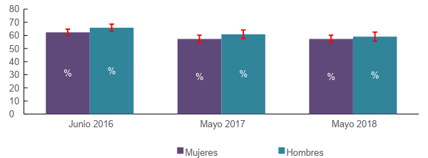 La asistencia a eventos culturales es diferencial según algunas características de la población, como es el sexo y nivel de escolaridad. Al revisar los resultados de los levantamientos, se identifica que este comportamiento diferencial no presenta modificación en los últimos dos levantamientos, pues se observa que la proporción de hombres que asiste a los eventos culturales seleccionados continúa siendo ligeramente mayor al de las mujeres.